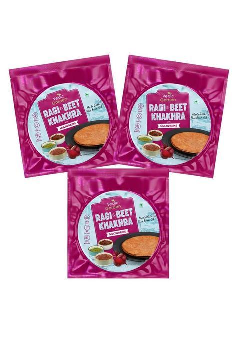 Vedic Garden Ragi Beetroot Khakhra - Multigrain Healthy Indian Snacks, 540G (Pack Of 3) | No Palm Oil 100% Roasted High Protein & Fiber Low-Calorie Diet Snack For Weight Loss Crispy Nutritious